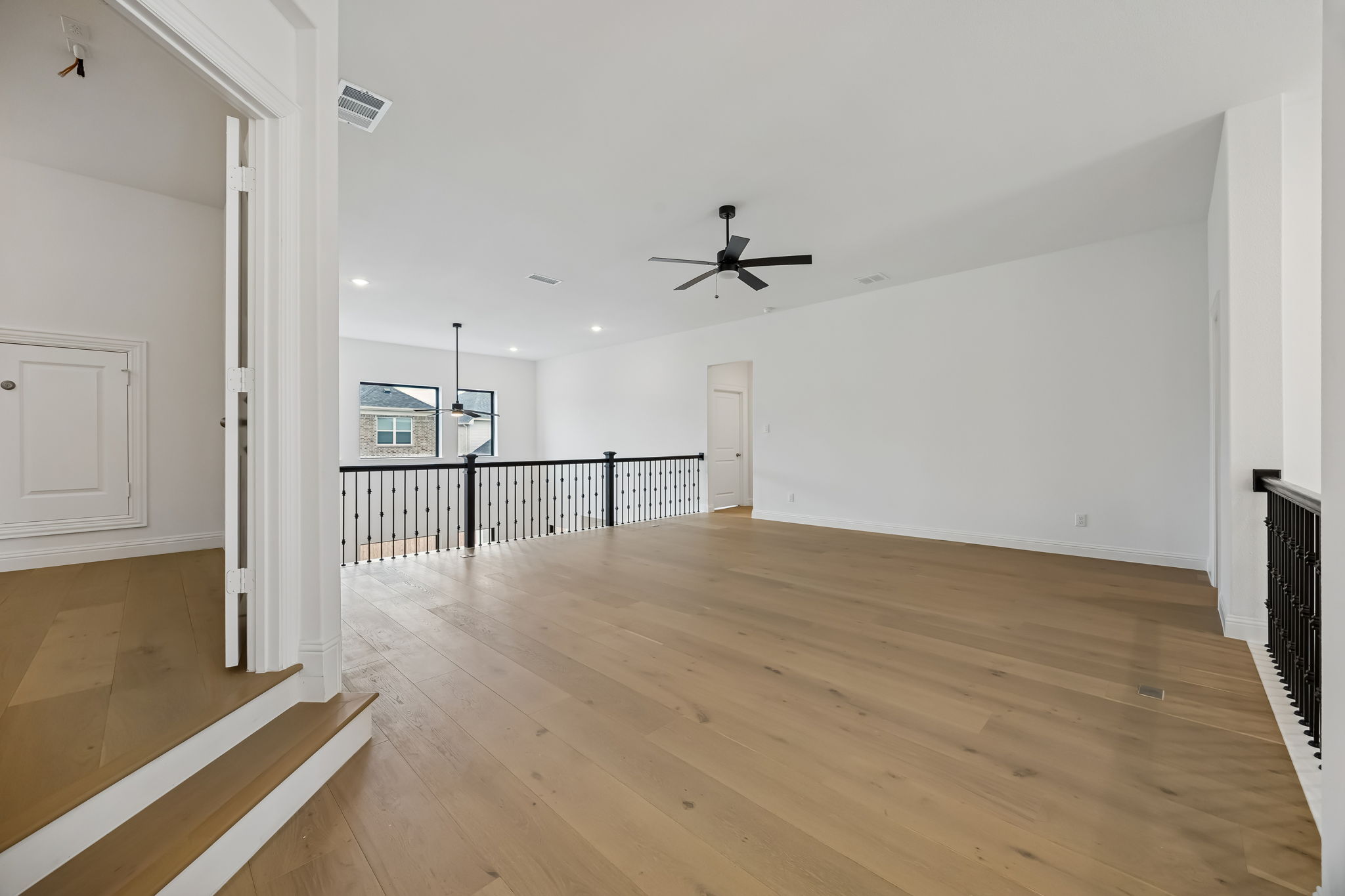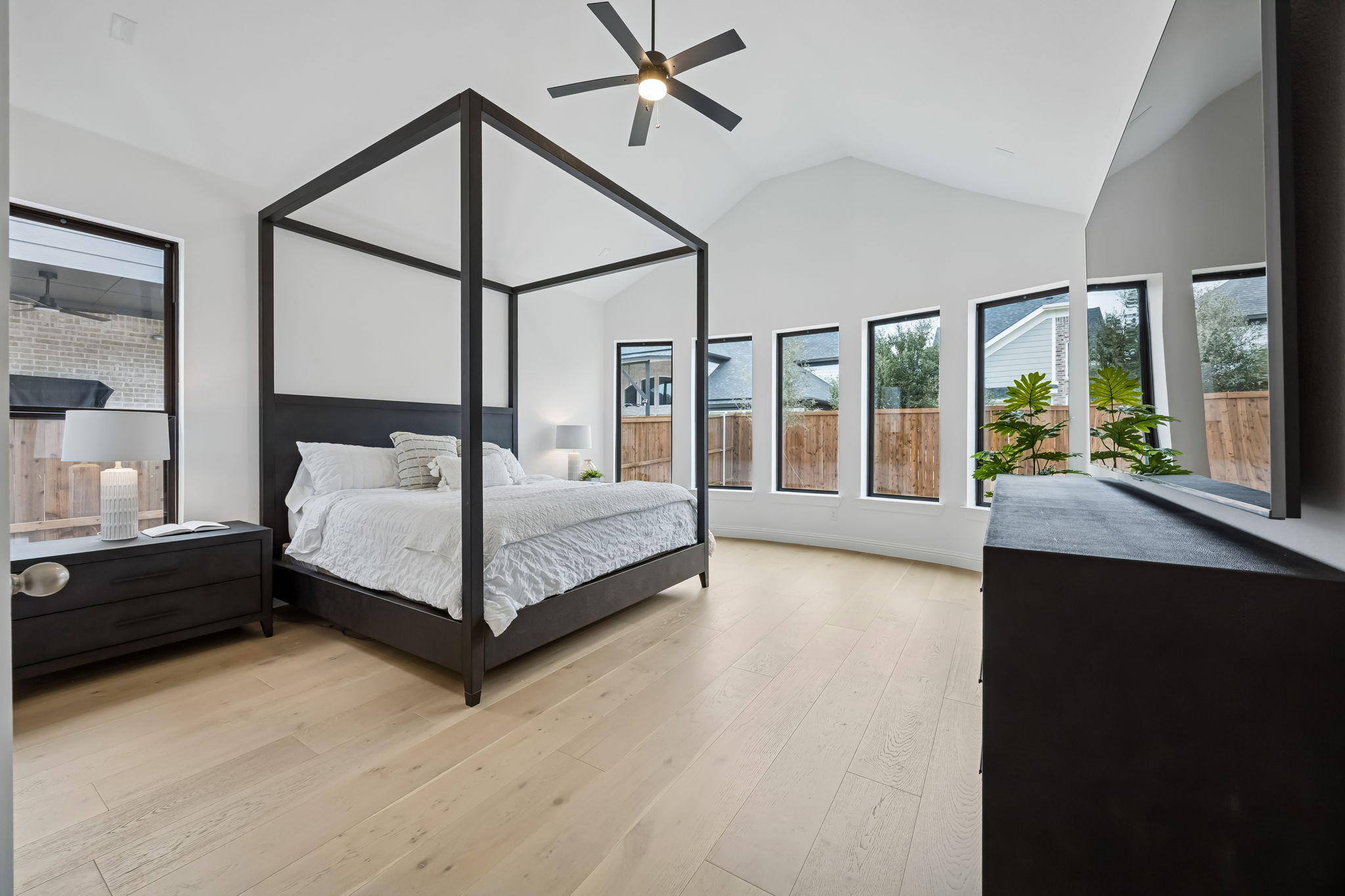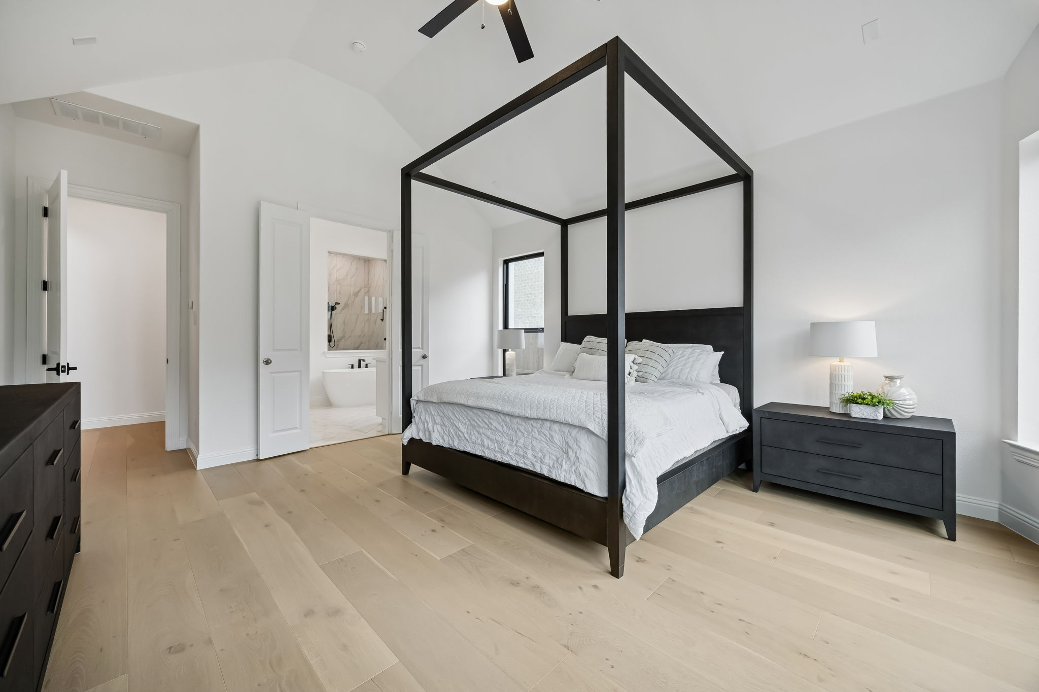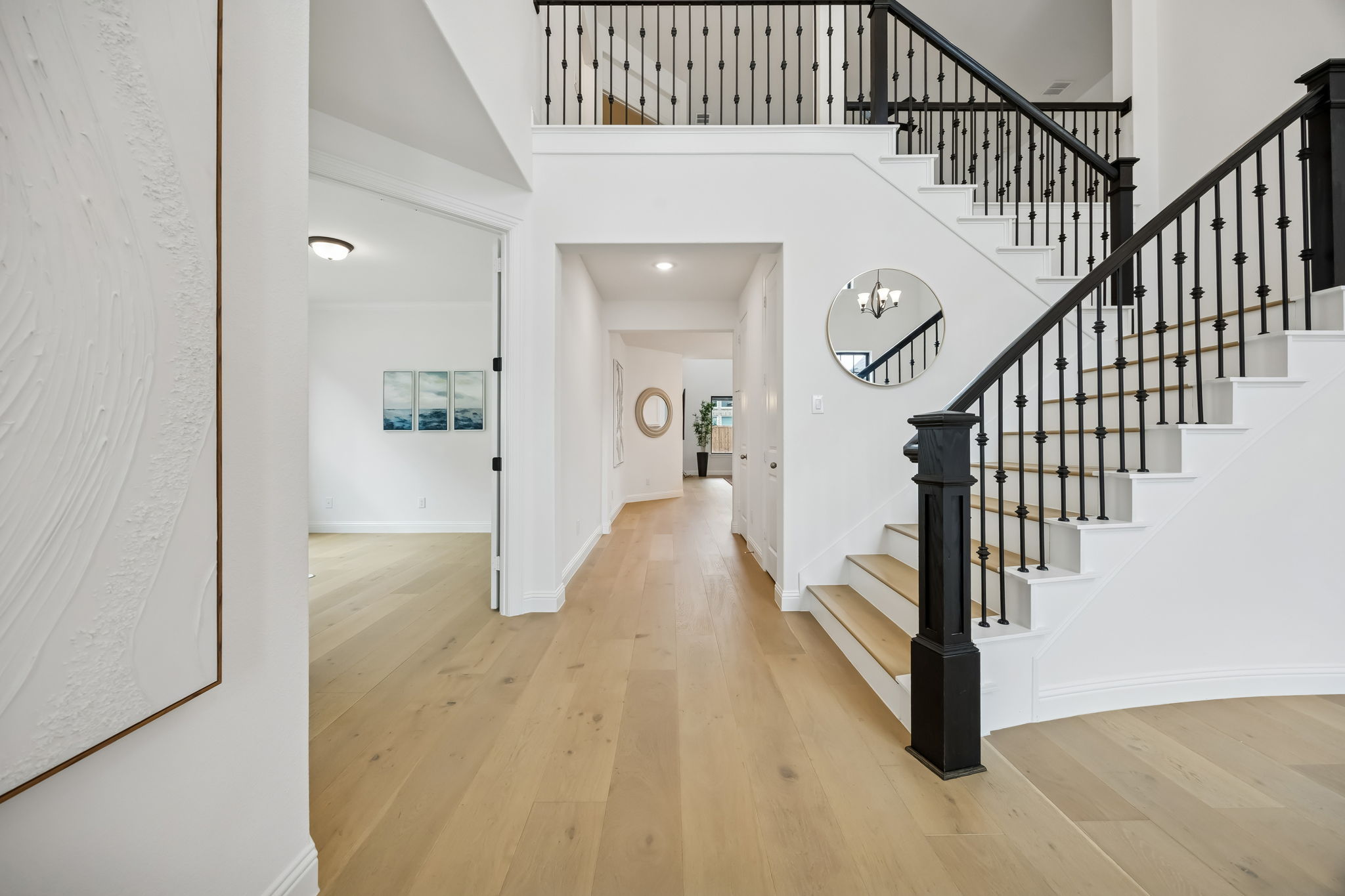 Robbins Coastside nine-inch engineered hardwood extends seamlessly across both floors with no carpet anywhere—an exceptionally rare finish that delivers warmth, continuity, and the unmistakable presence of true custom craftsmanship.
